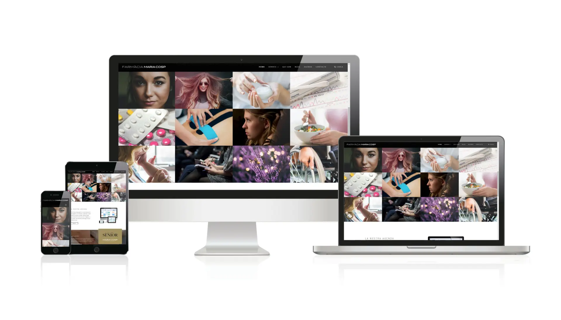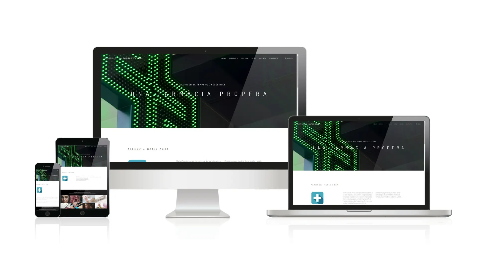 Actual i innovadora web per a una farmàcia de nou concepte basat en la visió integrativa de la persona, una percepció que engloba diversos coneixements del món de la salut.
