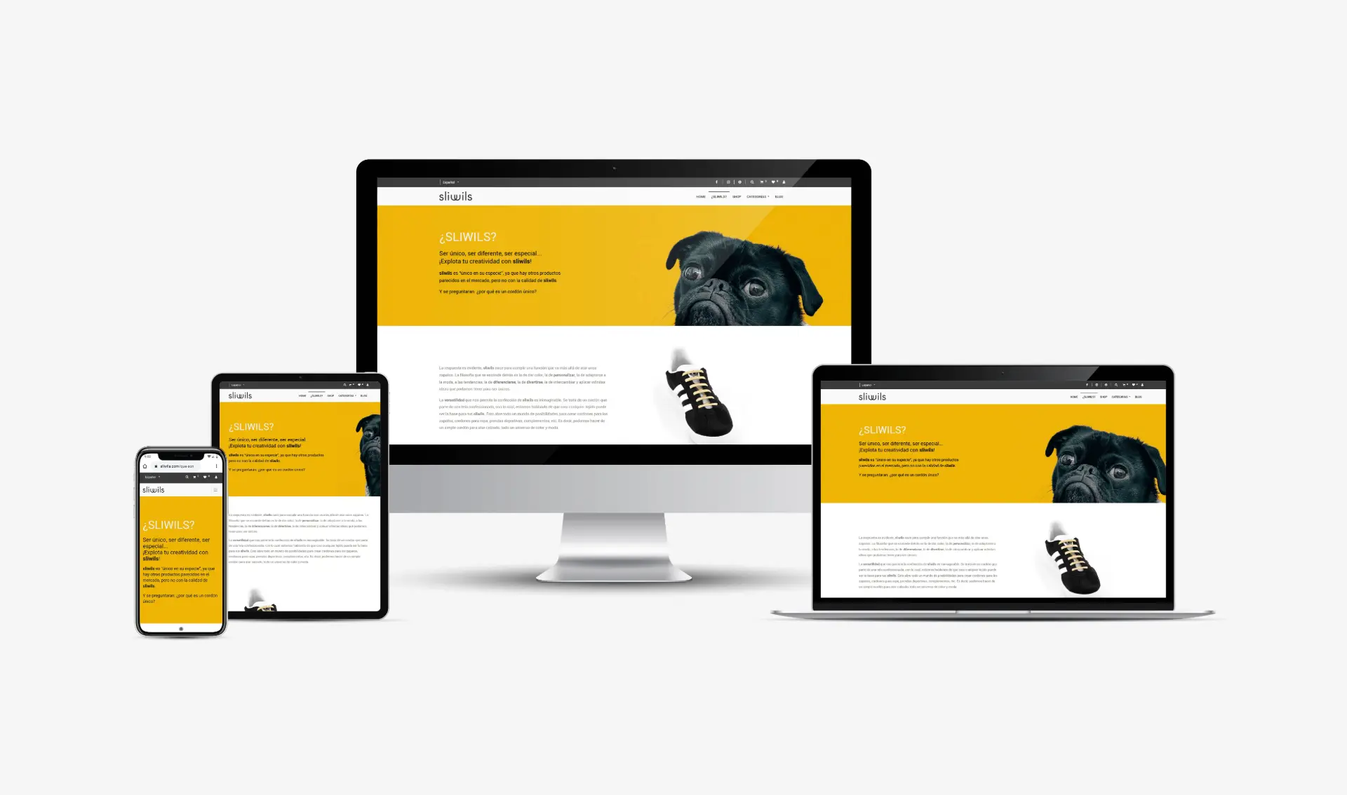 Després de realitzar el concepte global de la marca des del naming, el logotip, fins la imatge corporativa i el packaging, entre altres, es crea una plataforma, seguint el concepte ideat des dels inicis, on es pot consultar ràpidament els diferents models i col·leccions i realitzar la compra a través de la botiga online, així com realitzar els pagaments amb total seguretat.