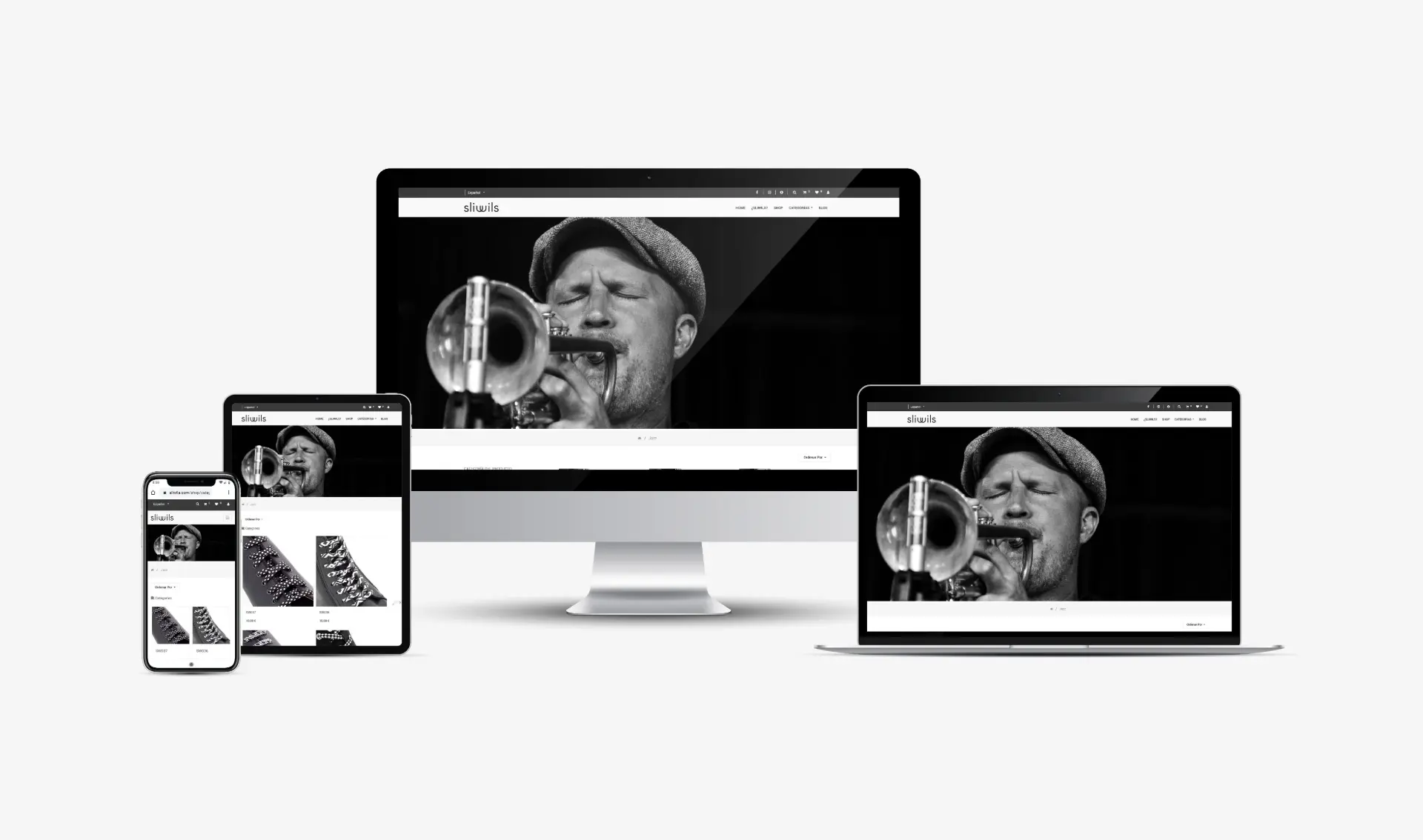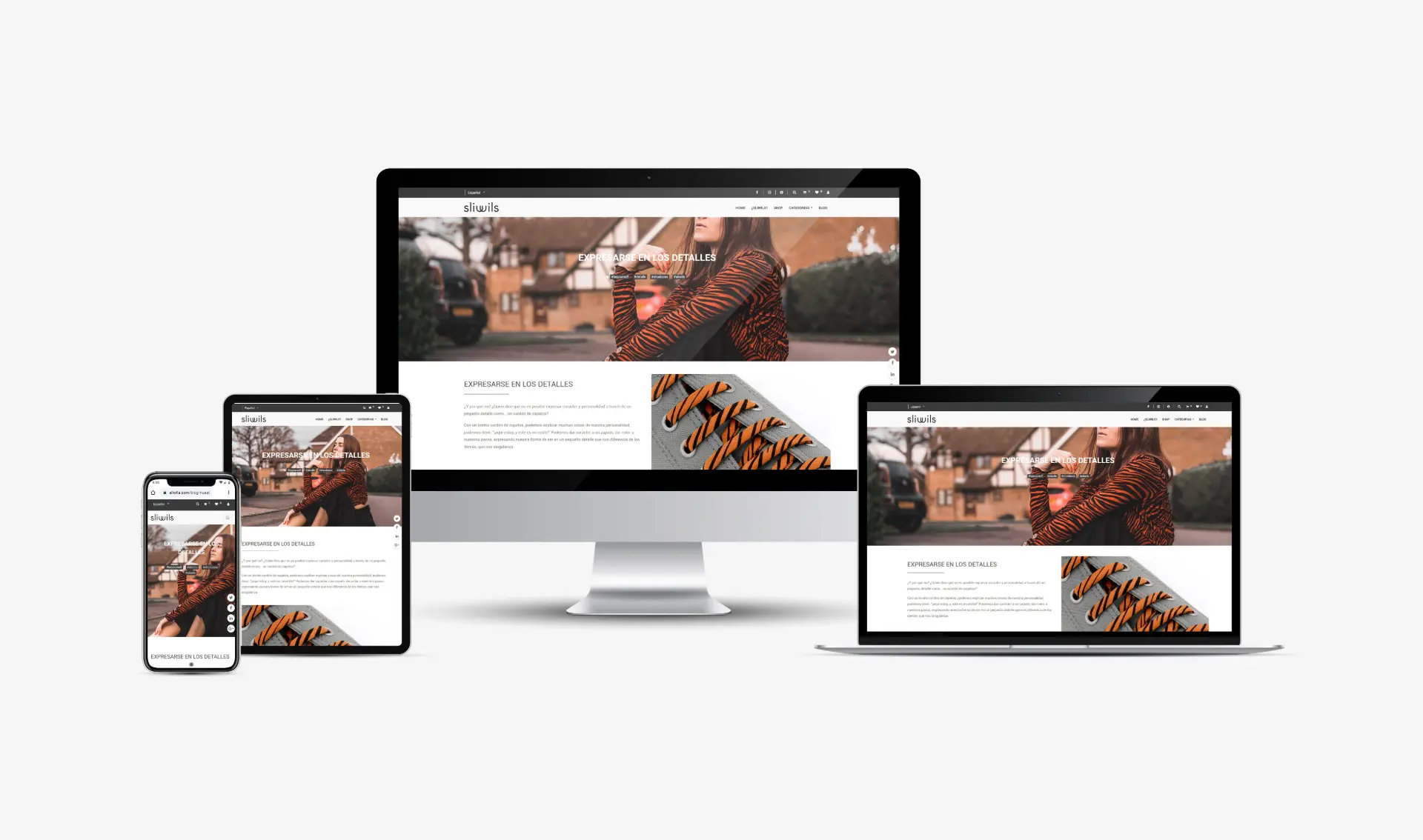 Web corporativa i botiga online per a la marca Sliwils, fabricant i distribuïdora de complements per a la moda a partir de teixit estampat a biaix.