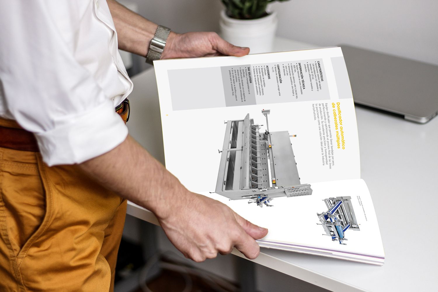Magma, dentro de la estrategia de marketing de la empresa, ha diseñado y maquetado diferentes catálogos dedicados específicamente a cada uno de los sectores donde Veserkal aporta estas soluciones. Se trataba de reunir en un catálogo, aquellos equipos diseñados por la empresa, que pueden facilitar soluciones a nivel productivo en los diferentes sectores: cárnico, hortofrutícola, pescadería, láctico, pastelería, logística, packaging, etc. Además, la colección de catálogos, se completa con un catálogo general donde se han reunido los equipos más destacados de la empresa.