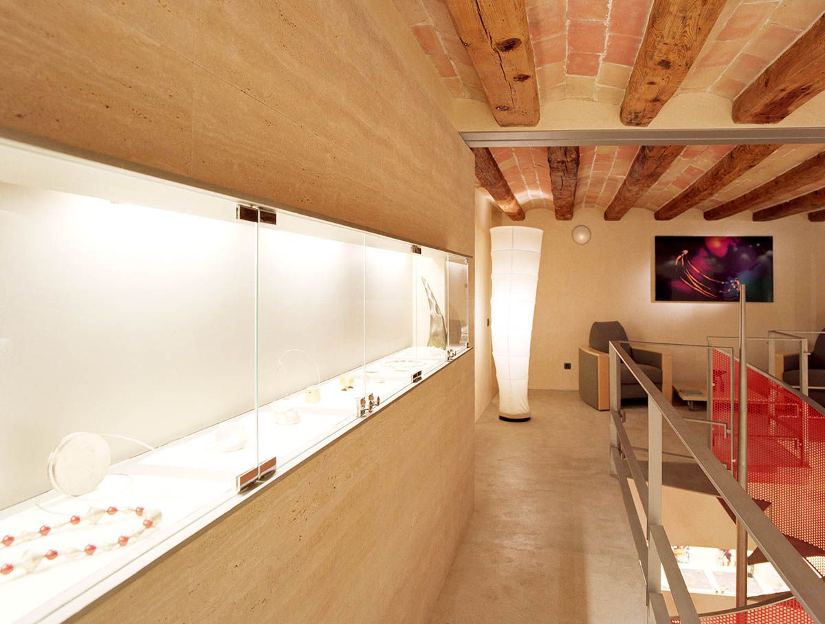Interiorismo altamente personalizado para un punto de venta de joyería de autor en el casco antiguo de Manresa, con una elevada exigencia de imagen, rigor de diseño y calidad en la realización. El proyecto se inserta dentro del proceso de rehabilitación del edificio entero.