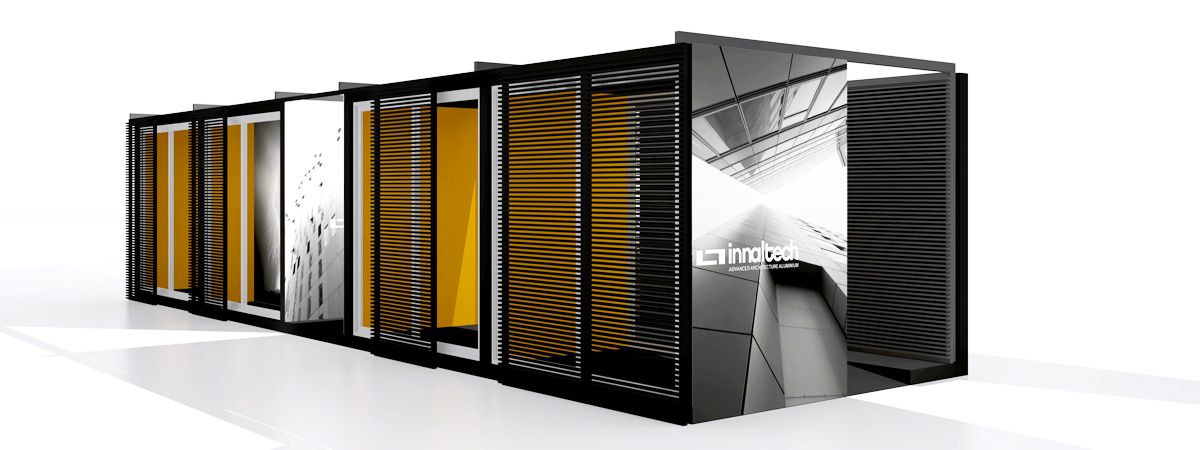 El stand Innaltech para la feria Construmat de Barcelona es el resultado de un proceso que incluye un estudio previo de necesidades, funciones, espacio y circulación, para dar lugar, posteriormente, al concepto creativo y el diseño de espacio correspondiente.